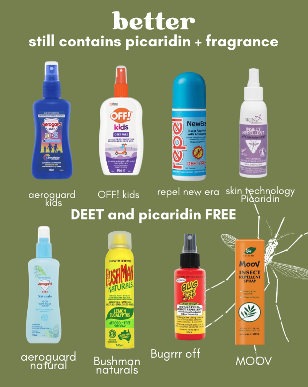 DEET is a solvent, meaning it can disrupt the skin microbiome, worsen eczema, sting broken skin, increase absorption of other chemicals applied at the same time.